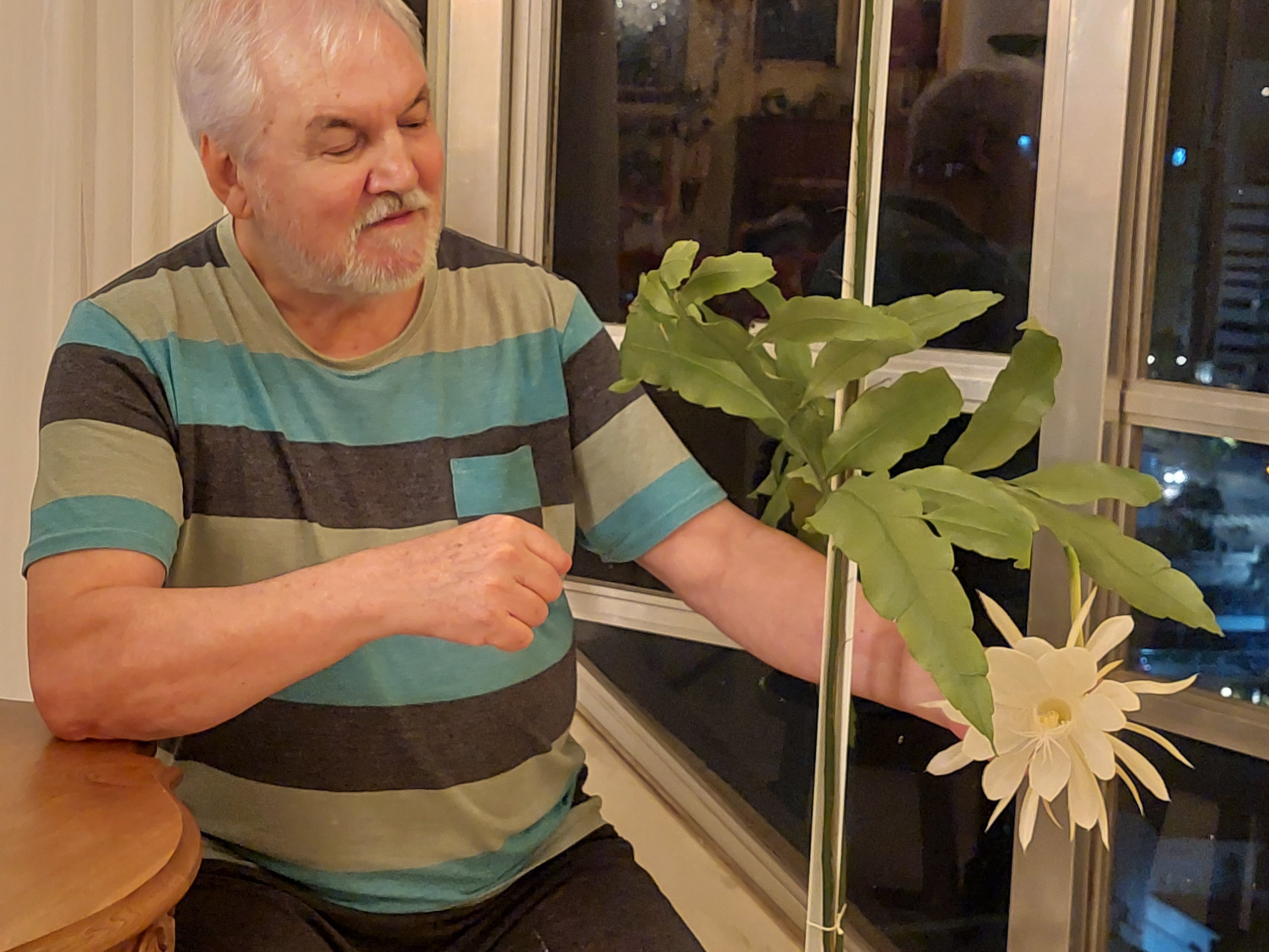 FOTO 31 – Minha foto com a "hata", a flor que vive apenas uma noite.