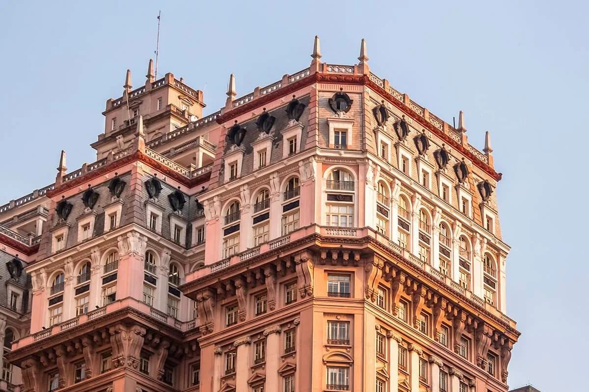 prédio vermelho retangular, de uns 6 andares, que é o Hotel Blue Tree Towers